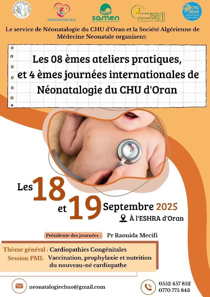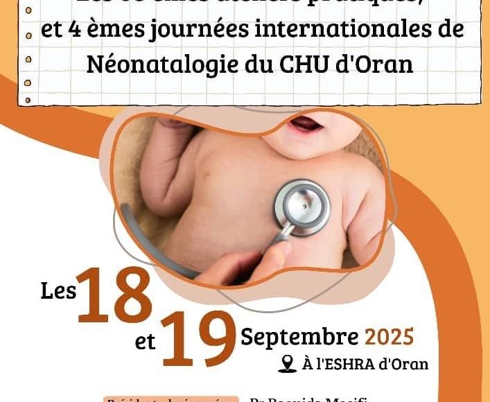 Le service de néonatologie du CHU d’Oran et la Société Algérienne de Médecine Néonatale s’apprêtent à accueillir, les 18 et 19 septembre 2025, les 8ᵉ ateliers pratiques et les 4ᵉ journées internationales de néonatologie, organisés à l’ESHRA d’Oran. Deux jours durant, la ville deviendra le point de convergence d’experts, de cliniciens et de chercheurs venus partager leur savoir et leurs expériences au chevet des plus petits des patients.